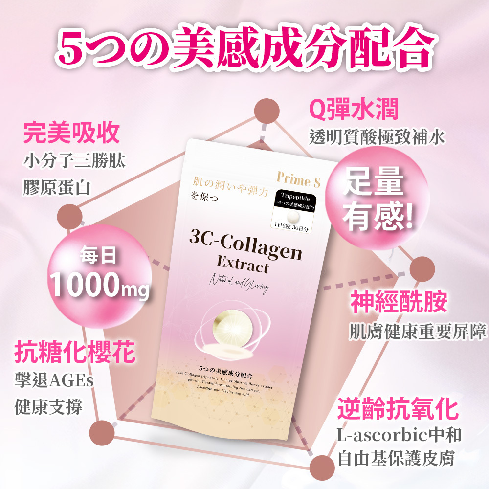🔺5 beauty-enhancing ingredients are combined: 3Cs are Tripeptide Collagen, Cherry blossom extract, Ceramide, Vitamin C and Hyaluronic acid