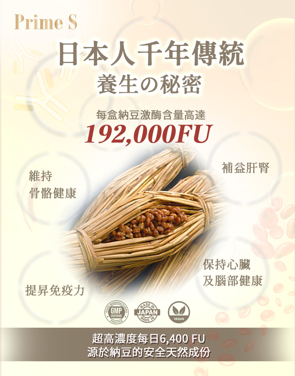 Super high concentration 192,000FU Nattokinase without red yeast rice