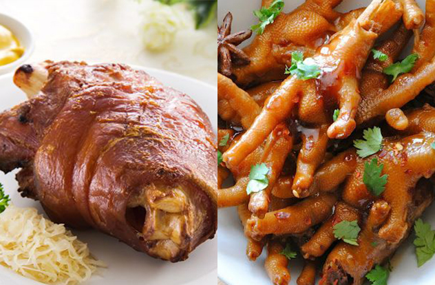 【食物】豬腳、豬皮、豬耳朵、豬尾巴、蹄筋、海參、魚皮(富含魚鱗膠原蛋白)、魚肚魚翅、雞皮、雞腳、黑白木耳