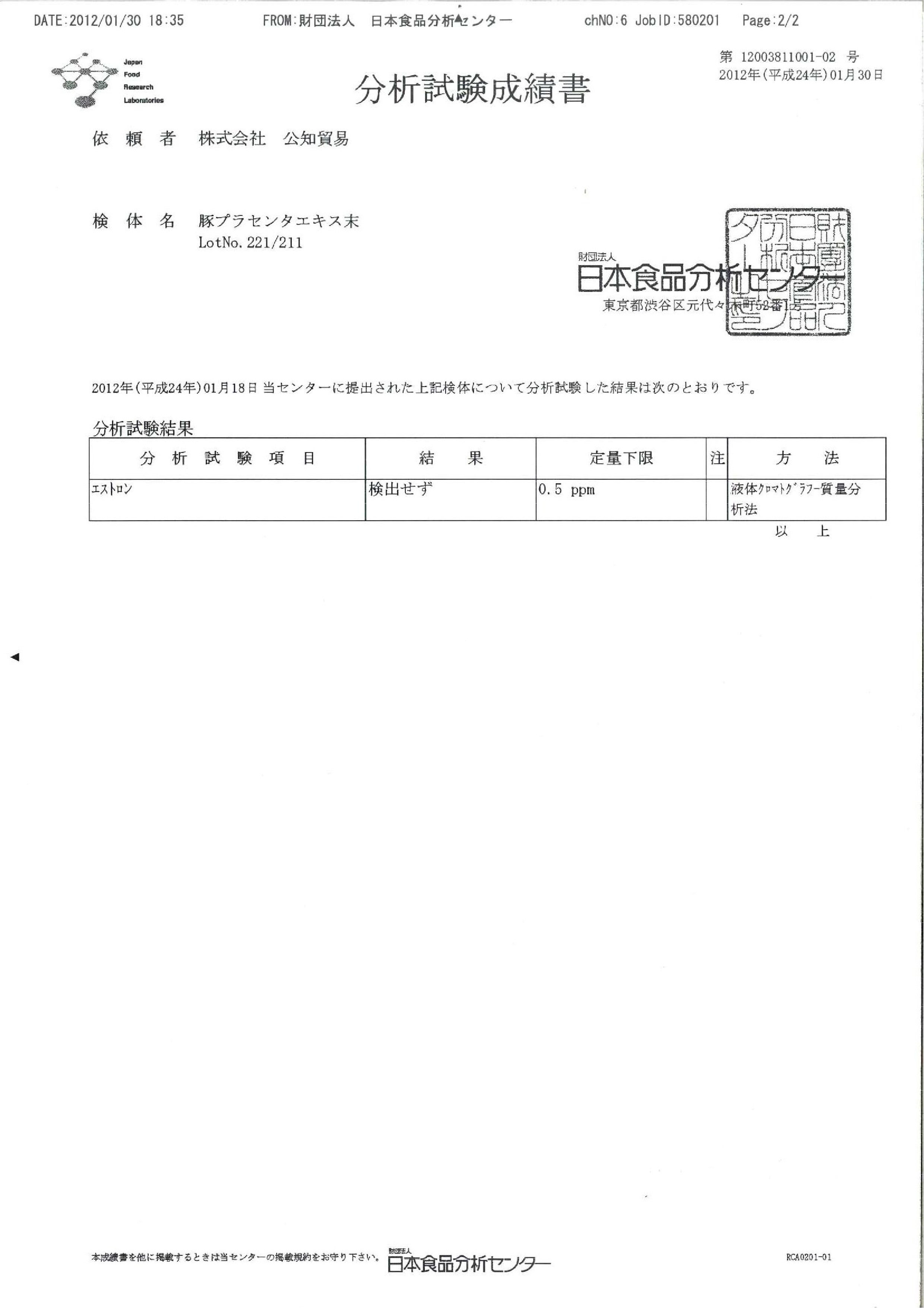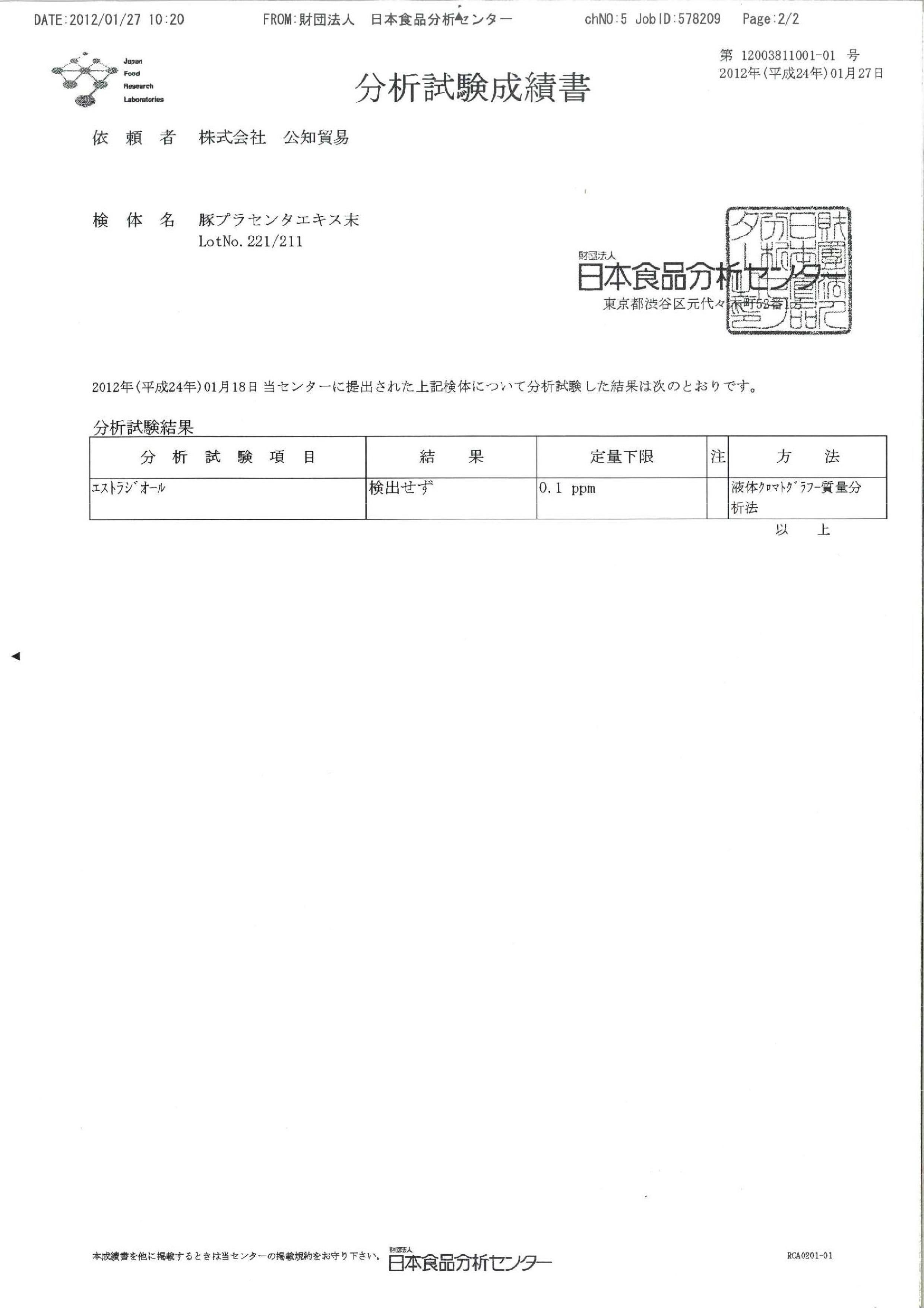 ▼PrimeS V塑美肌豐胸啫喱的成分內加有胎盤素,成分-胎盤素 經日本食品分析中心驗證為無雌激素。