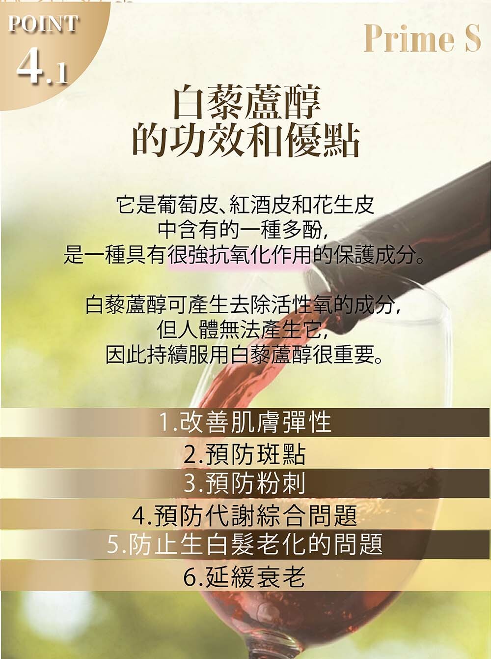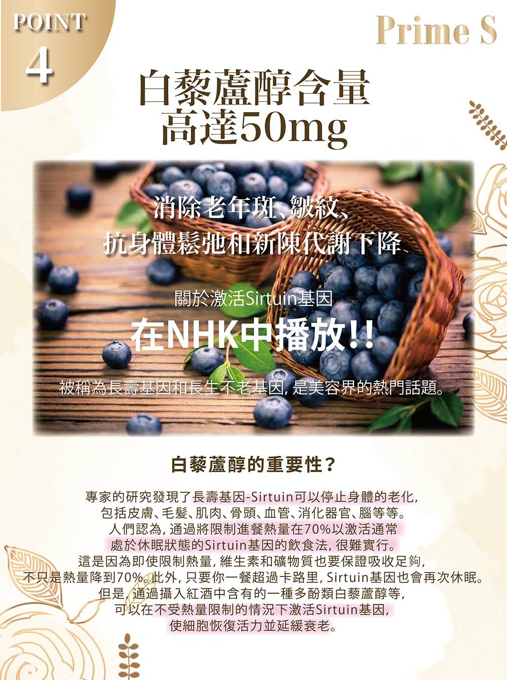 🔺添加白藜蘆醇,增強NMN的吸收,增加抗衰老、美肌